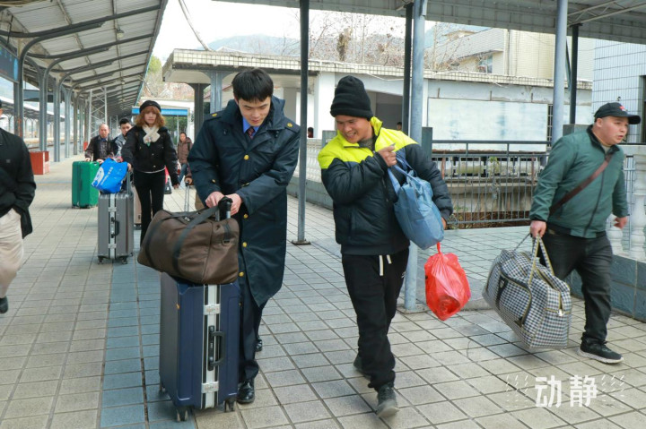 上午10时,客车开始密集到达,陈峰进入“暴走模式”,一会儿到检票口协助检票,一会儿帮助行李较多、行动不便的旅客搬运行李,一会儿到站台上进行引导。“我是革命一块砖,哪里需要哪里搬。”陈峰深有感触地说道,“每个铁路人都是重要一环,只有大家齐心协力,才能确保铁路正常运转。”